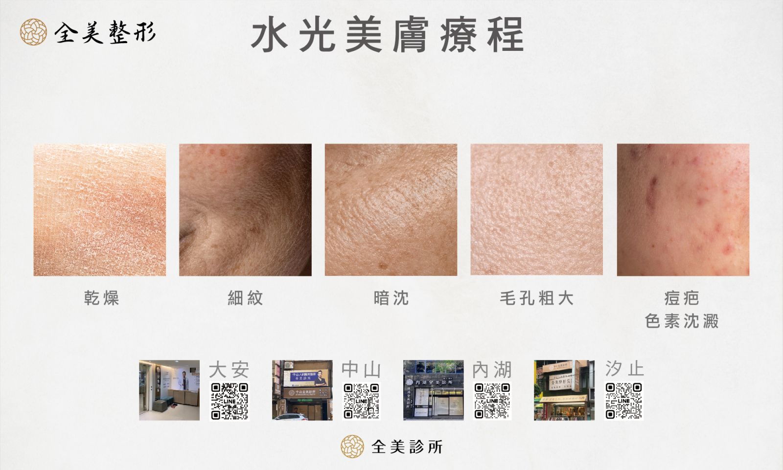 當患者有「皮膚更好」的需求,全美診所會因應患者的膚質和醫療需求,給予綜合考量的醫療處置建議有: