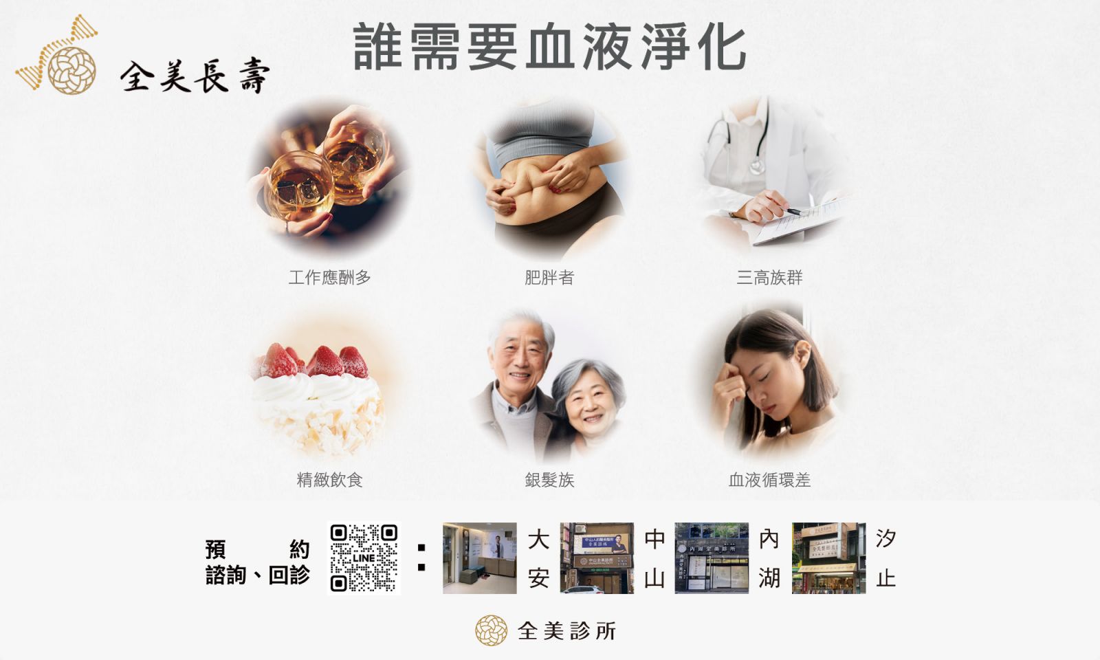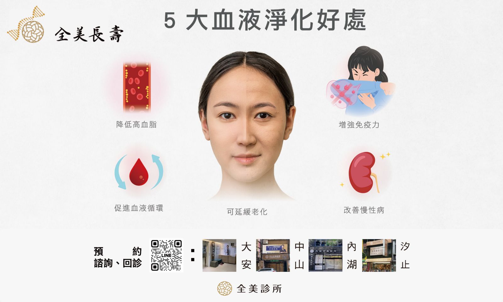 當患者有「預防心血管疾病、強健體魄」的健康需求,全美診所會因應患者的體質,建議「血液淨化療程」。