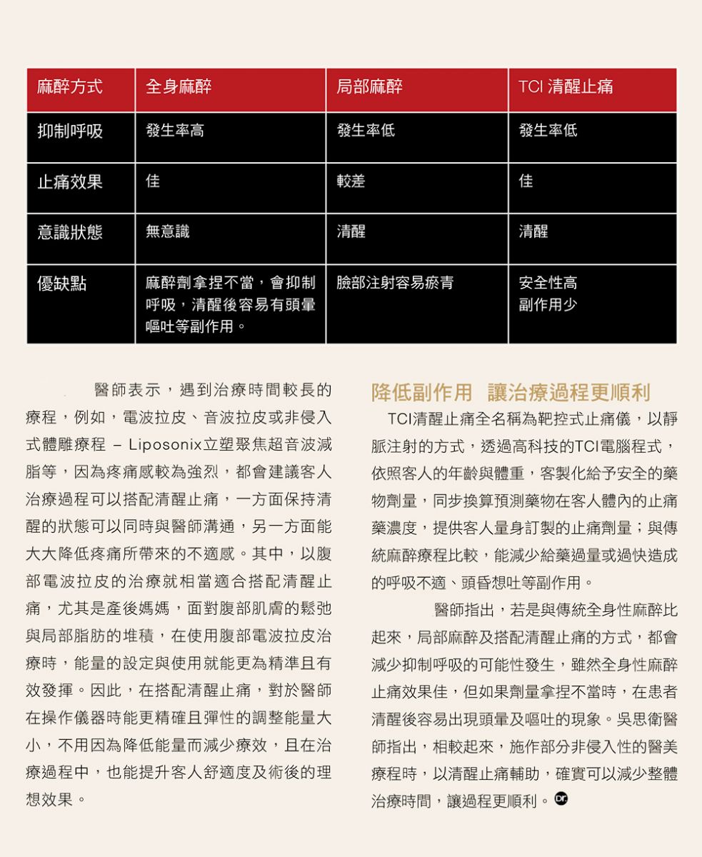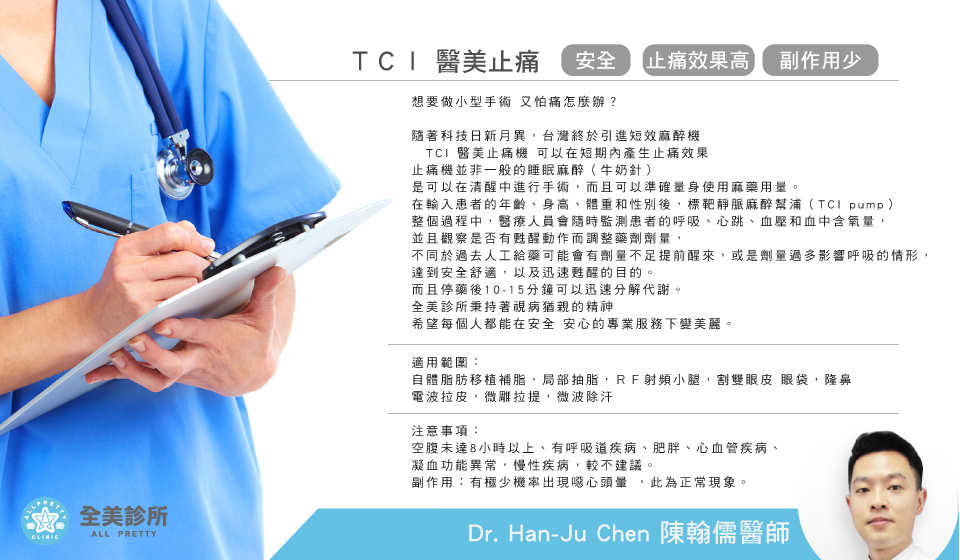 TCI 醫美止痛機 (俗稱睡美人麻醉機) 可以在短期內產生止痛效果