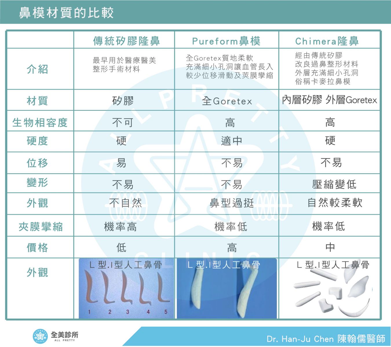 隆鼻手術發展至今漸趨成熟,隆鼻利用的假體材質選項也多樣化。