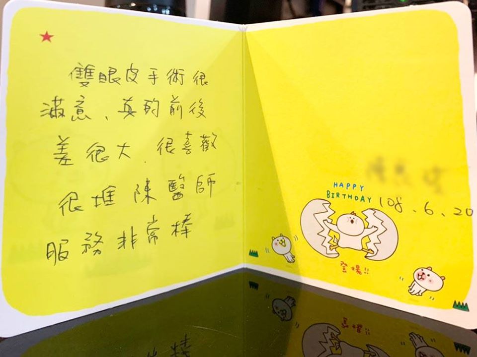 如今也過了半年,真的很謝謝陳醫師,讓我現在眼睛真的改變許多,