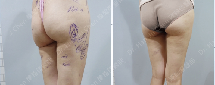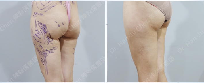 當年留在腹股溝的抽脂疤痕也相當明顯,