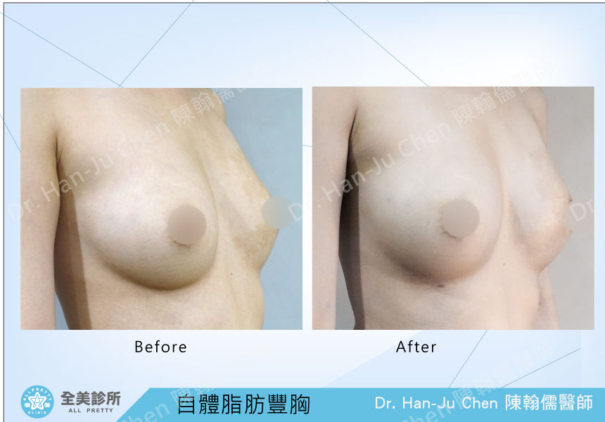 我當然把我的脂肪物盡其用一下,陳醫師幫我把我抽出來的脂肪補在我的胸部跟臉上,因為我的胸部真的有點兒小、臉又有點兒凹,讓我現在整個人看起來精神許多,且有種前凸後翹的感覺。
