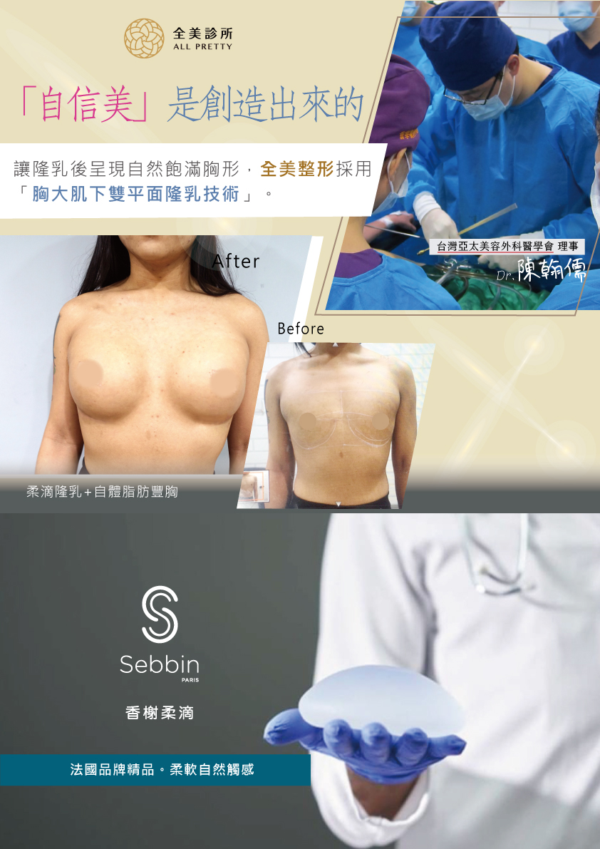 全美診所在給予患者「真正符合醫療需求」的專業建議時,會對以下需求進行綜合考量:「體積增大、乳房突出度、身材雕塑、以及乳房柔軟度的要求。」