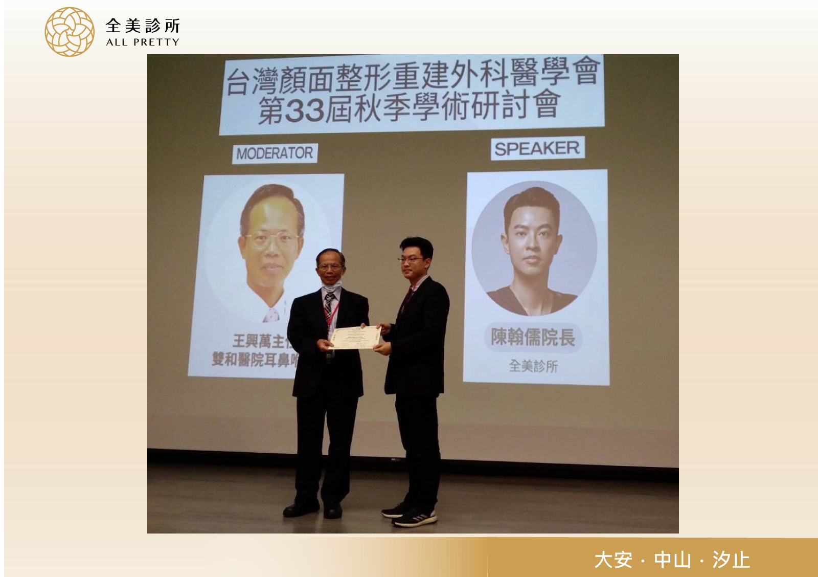 身為顏面整形重建外科醫學會理事,且在眼整形有獨到心得,而受邀參加「2022年第33屆秋季學術研討會」演講,分享「客製化滿足患者需求的淚溝、黑眼圈、眼下細紋處置」。